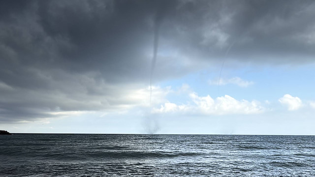 Toplu Mahallesi Liman mevkisinde denizde meydana gelen hortum, kıyıya yakın bölgede kısa süre etkili oldu.