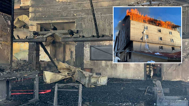 Bolu Kartalkaya Kayak Merkezi’nde 10 kişinin hayatını kaybettiği, 32 kişinin yaralandığı yangının ardından otelin içi görüntülendi.