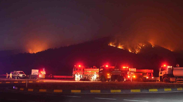 Kastamonu’da etkili olan orman yangınında havanın kararmasıyla birlikte söndürme çalışmalarına karadan devam ediliyor.