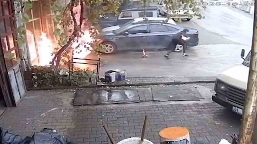 Ekiplerin incelemeleri sürerken, yangın anı saniye saniye güvenlik kamerasına yansıdı. Görüntülerde, iş yerinin içinden bir anda alevler yükselmeye başladığı ve bu sırada içeride bulunan iki kişinin koşarak dışarı çıktığı görülüyor. Son anda dışarı çıkabilen S.S. ve Onur G., koşarak kıyafetlerini ve ellerini saran alevleri söndürmeye çalışıyor.