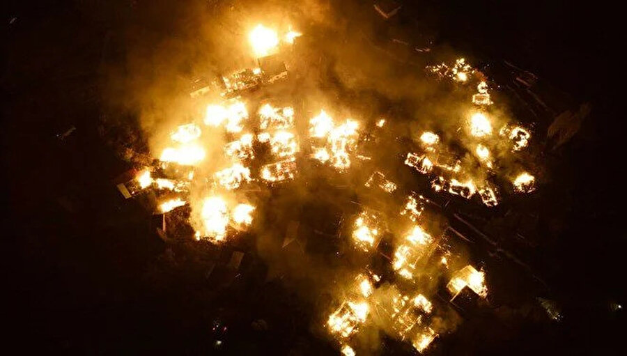 Orman Genel Müdürlüğüne ait helikopterle de havadan müdahale edilen yangından ilk belirlemelere göre 43 ev etkilendi.