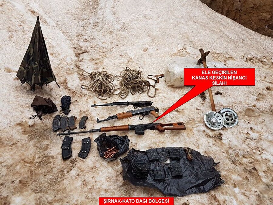 Şırnak'ın Beytüşşebap ilçesinin Kato Dağı bölgesinde 19 Nisan'da başlayan operasyonda PKK'lı teröristlerin kullandığı 22 mağara ile birlikte çok sayıda silah ele geçirildi.