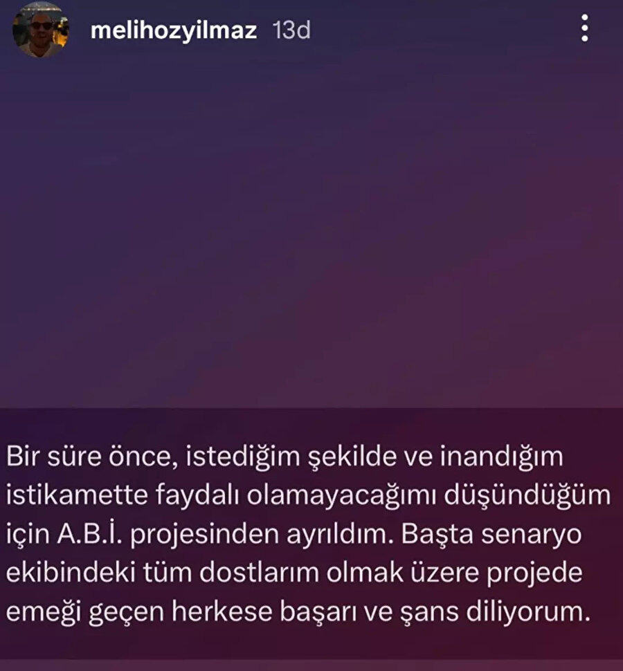 Özyılmaz, yaptığı açıklamada ayrılık gerekçesini “İstediğim şekilde ve inandığım istikamette faydalı olamayacağımı düşündüğüm için A.B.İ projesinden ayrıldım” sözleriyle dile getirdi. Bu ifadeler, dizide yaratıcı fikir ayrılıklarının yaşandığı iddialarını güçlendirdi.
