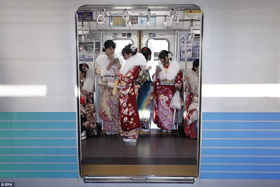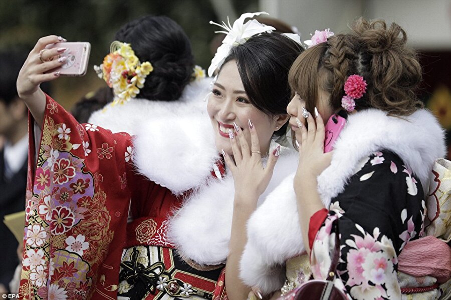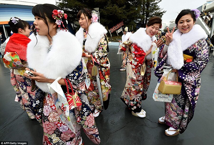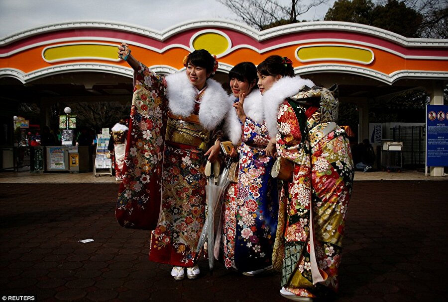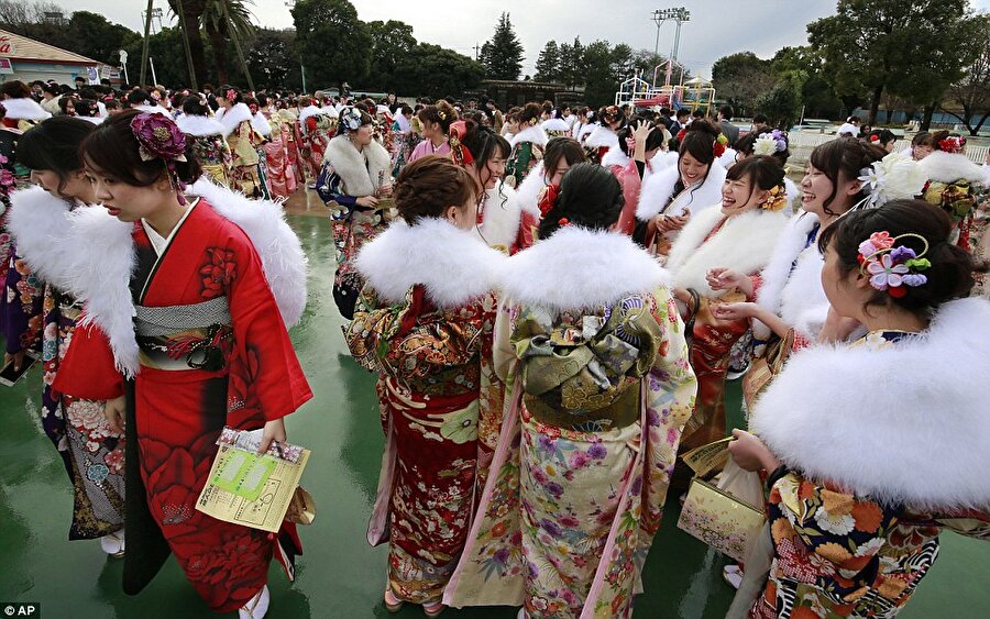 Her yıl ocak ayının ikinci pazartesi günü Japonya'da '20 Yaş Günü' kutlamaları için resmi tatil yapılır. Özellikle kadınlar geleneksel giysileri olan kimonoları giyer, takıp takıştırır ve sokaklara çıkar. Japon kadınların kimono ile sokaklara çıkması ise ilginç görüntülerin kaydedilmesine neden oluyor. İşte Japonya'dan renkli görüntüler.