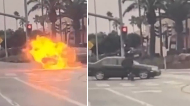 ABD’nin California eyaletine bağlı Salinas kentinde meydana gelen kazada, kırmızı ışıkta geçen bir motosiklet sürücüsü, seyir halindeki bir otomobilin yakıt deposuna çarptı. Çarpışmanın ardından motosiklet bir anda alev topuna dönerken, o anlar bölgedeki güvenlik kameraları tarafından kaydedildi.