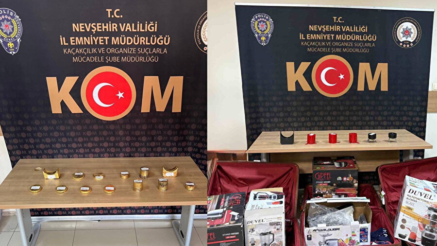 Yurt dışından İstanbul aktarmalı olarak Kapadokya Havalimanı’na gelen 5 yabancı uyruklu şahsı takibe alan KOM ekipleri, beraberlerinde getirdikleri kıyma ve hamur karma makinelerini detaylı incelemeye aldı. Makine parçalarındaki şüpheli yoğunluğu fark eden polis, cihazları matkapla açarak iç kısımlarına eritilerek saklanmış altınları ortaya çıkardı.