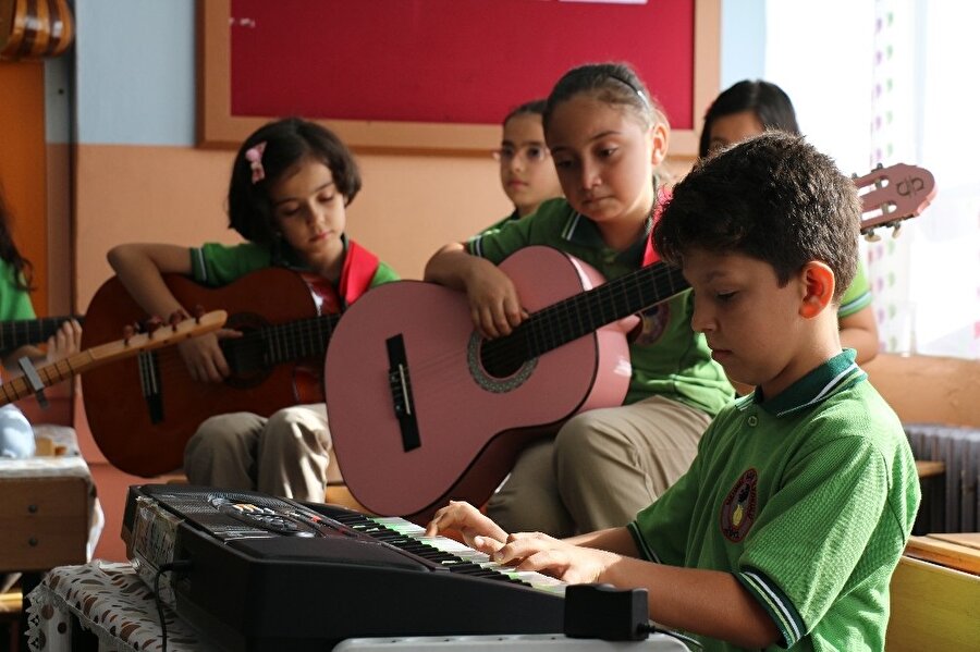 Sezer Ortadağ’ın sınıf öğretmeni olduğu öğrenciler 1. sınıfa başladığından itibaren enstrüman çalmayı öğreniyor. Öğrencilerin aynı zamanda Minik Notalar isimli bir grubu da var.