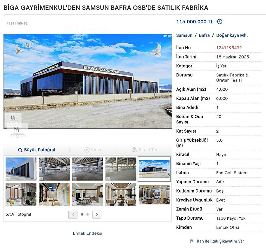 Mali sıkıntılar nedeniyle konkordato ilan eden Aysunzade Tekstil, Samsun’daki fabrikasını 115 milyon TL bedelle satışa çıkardı. Ünlü markalara üretim yapan şirket, yaşadığı ekonomik krizden çıkmak için varlıklarını değerlendirmeye çalışıyor.