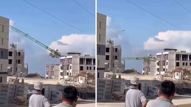 Hatay’da temel açma çalışmaları sırasında patlatılan dinamit kule vinci sarsarak yıktı, o anlar kameraya yansıdı.