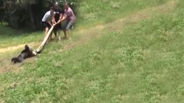 Köpeğin yem olmasını son anda kurtaran köylüler, yılanı karaya doğru çekip kafasına sopalarla vurarak köpeği bırakmasını sağladı. Kurtarılan köpek yılana havlayarak olay yerinden uzaklaştı.