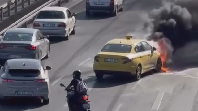 Olay bugün Kennedy Caddesi üzerinde meydana geldi. Cadde üzerinde seyreden 34 TFV 87 plakalı taksinin motor kısmında henüz bilinmeyen bir sebeple yangın çıktı. Taksinin içindekiler araçtan inerken, aracın yolun orta şeridinde yanması sebebiyle caddede trafik yoğunluğu oluştu. Yangın, çevredekilerin ihbarı üzerine olay yerine gelen itfaiye ekipleri tarafından söndürüldü. Olayla ilgili soruşturma başlatıldı. Taksinin yandığı anlar, caddeden geçen başka araçlardaki kişiler tarafından cep telefonu ile kaydedildi. (DHA)