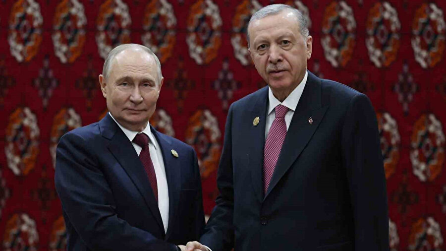 Cumhurbaşkanı Recep Tayyip Erdoğan, Uluslararası Barış ve Güven Forumu'na katılmak üzere gittiği Türkmenistan'ın başkenti Aşkabat'ta, Rusya Devlet Başkanı Vladimir Putin ile bir araya geldi.
