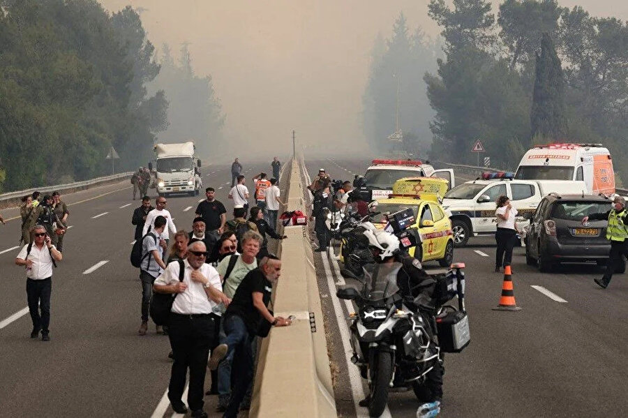 İsrail Polisi Sözcüsü Dean Elsdunne, bölgedeki yangının yayıldığını ve ülkenin önemli otoyollarından 1 No'lu otobana yaklaştığını belirtti.
