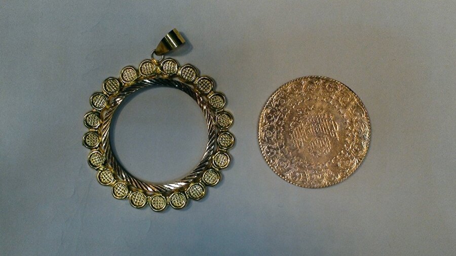 Kartal'da müşteri kılığında kuyumcuya gelen bir kadın, kolye kısmı gerçek ancak iç kısmı sahte olan çerçeveli bir ziynet altını iş yeri sahibine satmayı başardı.