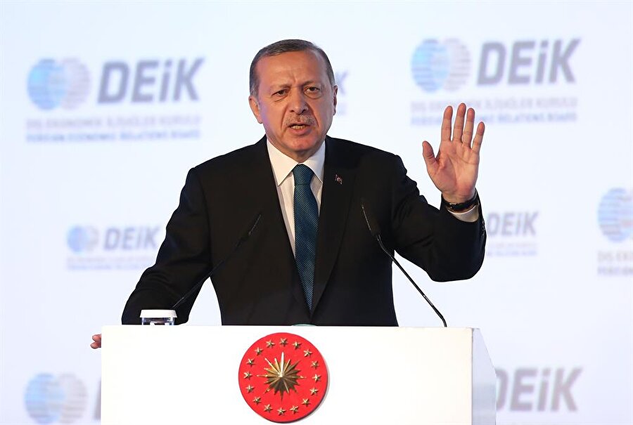 Cumhurbaşkanı Recep Tayyip Erdoğan, Şişli Marriott Hotel'de yapılan Dış Ekonomik İlişkiler Kurulu (DEİK) Genel Kurulu'nda konuştu. Ekonomik gelişmelere değinen Cumhurbaşkanı Erdoğan, Ortadoğu ve bölge hakkında bazı açıklamalarda bulundu.