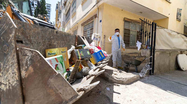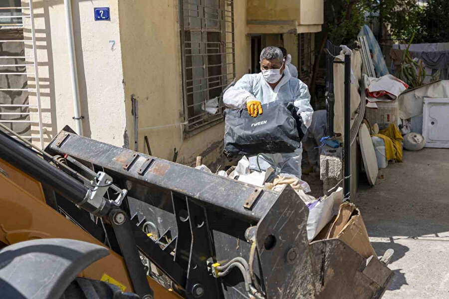 Evden çıkarılan evsel atıklar, bozulmuş eşyalar ve çöpler kamyonlara yüklenerek uygun şekilde bertaraf edildi. Temizlik çalışması sırasında çevrede gerekli güvenlik önlemleri alınırken, işlemlerin ardından Mersin Büyükşehir Belediyesi Haşere ile Mücadele Şube Müdürlüğü ekipleri de evde ve çevresinde ilaçlama çalışması gerçekleştirdi.