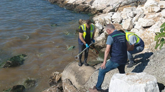 İhbar üzerine harekete geçen ekipler, Yalova Belediyesi'ne ait yağmur suyu deşarj hattından numune aldı.