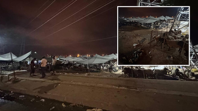 Sürücüsünün kimliği öğrenilemeyen otomobil, Deniz Mahallesi Nevit Kodallı Caddesi'nde seyrederken kontrolden çıkarak yol kenarındaki kurbanlık hayvan pazarına girdi.