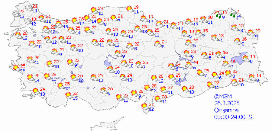 Meteoroloji Genel Müdürlüğü, 26 Mart ülke genelinde hava durumuna ilişkin yeni tahminlerini paylaştı. Bazı bölgelerde yağış beklenirken, kuzeybatı kesimlerde toz taşınımı etkili olacak. Doğu Karadeniz ve Doğu Anadolu’nun yüksek kesimlerinde ise çığ tehlikesi devam ediyor.