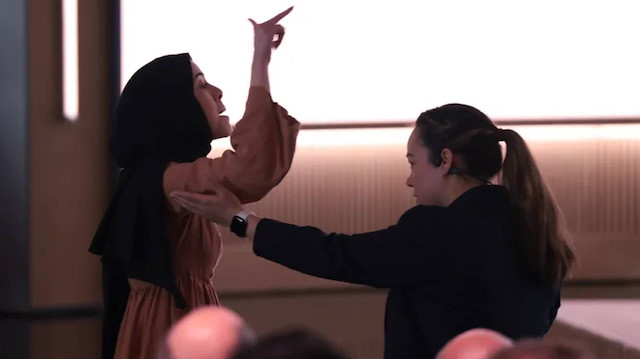 Microsoft'un kurucu ortağı Bill Gates ve şirketin eski CEO'su Steve Ballmer'ın da bulunduğu seyircilerin arasından sahneye yaklaşan Ibtihal Aboussad, sahnedeki Süleyman'a seslenerek, "Yapay zekayı iyilik için kullanmayı önemsediğini iddia ediyorsun ama Microsoft, İsrail ordusuna yapay zeka silahları satıyor. 50 bin insan öldü ve Microsoft bölgemizdeki bu soykırımı destekliyor." dedi.