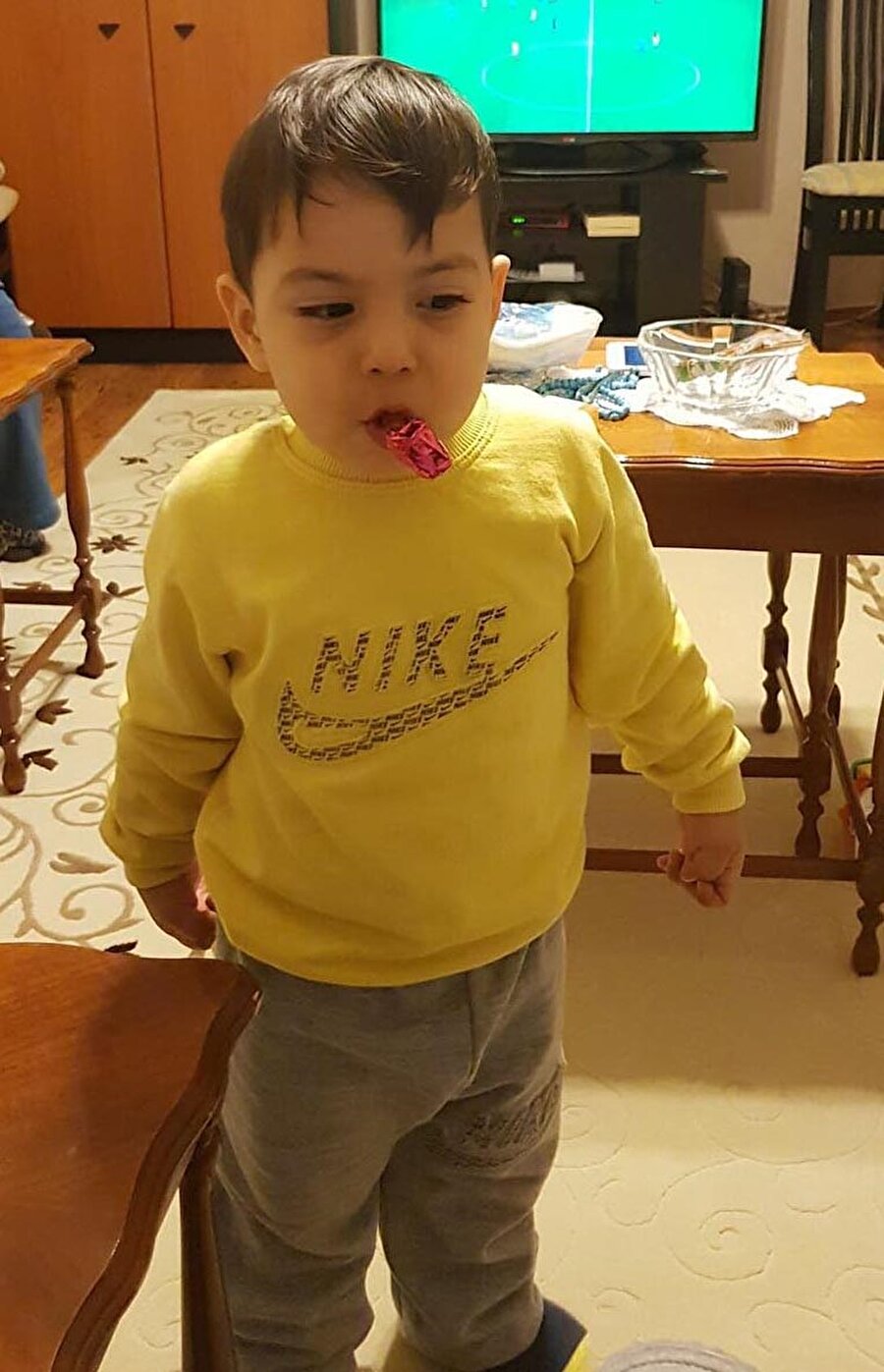 Manisa'da yaşayan Şahin ailesinin 3 yaşındaki ferdi Ömer Yasir Şahin'in nefes borusuna, 8 ay önce ebeveyni ile dışarıda gezdiği sırada, annesinin verdiği fındık kırıntıları kaçtı.