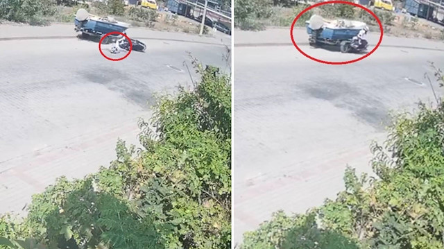Kaza anı ise çevrede bulunan bir güvenlik kamerası tarafından saniye saniye kaydedildi. Görüntülerde caddede seyir halinde olan sürücünün park halindeki tekne yüklü römorka çarpıp, yere düştüğü anlar yer aldı. Polis ekipleri tarafından sürücü belgesi olmadığı belirlenen A.A.’ya 18 bin 678 TL cezai işlem uygulandı.