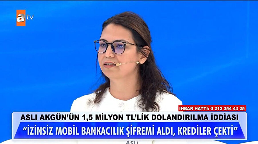 ATV'de yayınlanan Müge Anlı ile Tatlı Sert programına katılan Aslı Akgün, bir dönem duygusal ilişki yaşadığı erkek arkadaşı E.K. tarafından dolandırıldığını iddia etti. “Güvendiğim biri tarafından kandırıldım. Bütün paramı kaybettim.” sözleriyle yaşadıklarını anlatan genç kadın, E.K.'nın banka hesabından gizlice 350 bin tl çektiğini söyledi.