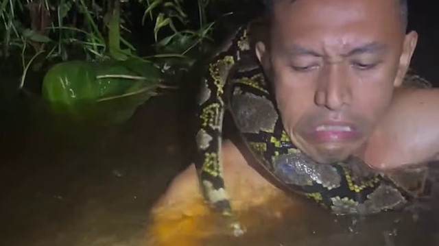 Endonezya’nın Borneo adasında bir nehir turu sırasında altı metrelik dev bir piton, tur rehberi Heru’nun boynuna dolanarak onu suyun altına çekti. Profesyonel yılan yakalayıcısı olan Heru, nehir kıyısında hareketsiz yatan dev pitonu fark edince baş kısmından kavramak için suya uzandı. Ancak yılan hızla hamle yaparak onu tekne üzerinden suya sürükledi.