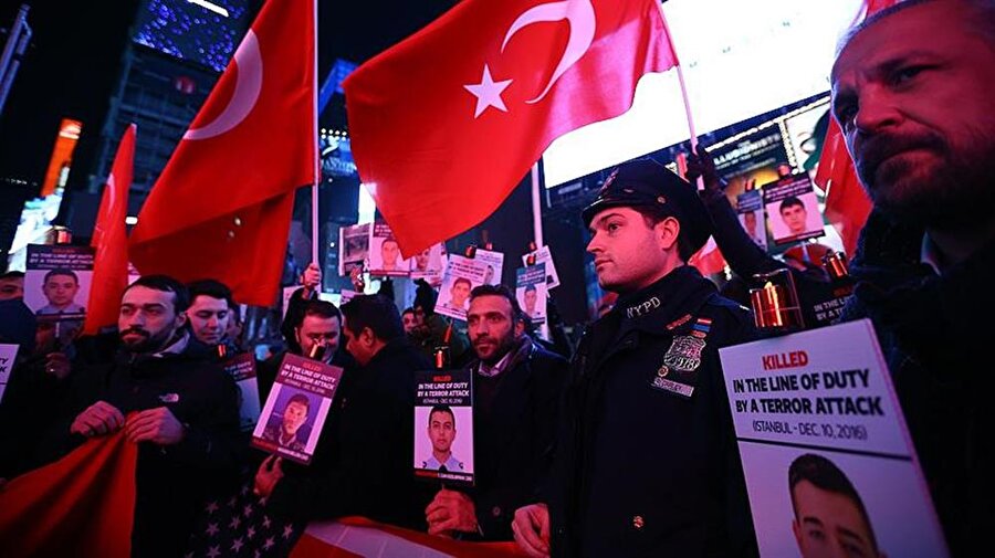 ABD'nin New York eyaletinde Times Meydanı'nda İstanbul'da gerçekleştirilen terör saldırısında şehit olan polis memurları için anma töreni düzenlendi.