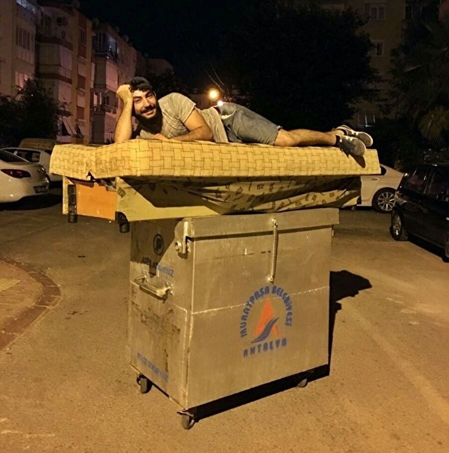 Antalya’nın Muratpaşa ilçesinde arkadaşıyla birlikte kalacağı eve eşyalarını elleriyle taşımaya başlayan üniversite öğrencisi Onur Durmuş, bir süre sonra kanepeyi de arkadaşı Semih Telin’le taşımak istedi. Mesafenin yakın olması nedeniyle nakliyeciye para vermek istemeyen iki genç, Muratpaşa Belediyesinin çöp konteynerini kullandı. Konteynerin üzerine koydukları kanepeyi eve götüren gençler, o anları fotoğraflamayı da ihmal etmedi.