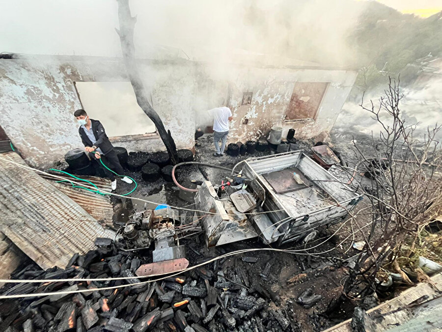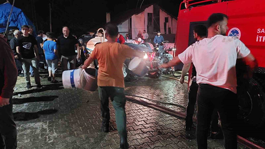 Yangını söndürmeye çalışan ekiplere bölge halkı da destek verdi.
