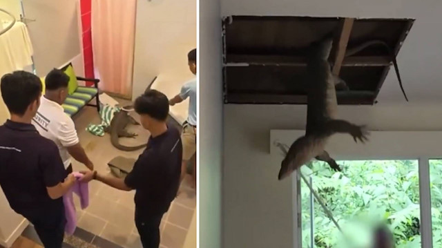 Otel odasında beklenmeyen misafir: Tavandan giren komodo ejderi panik yarattı