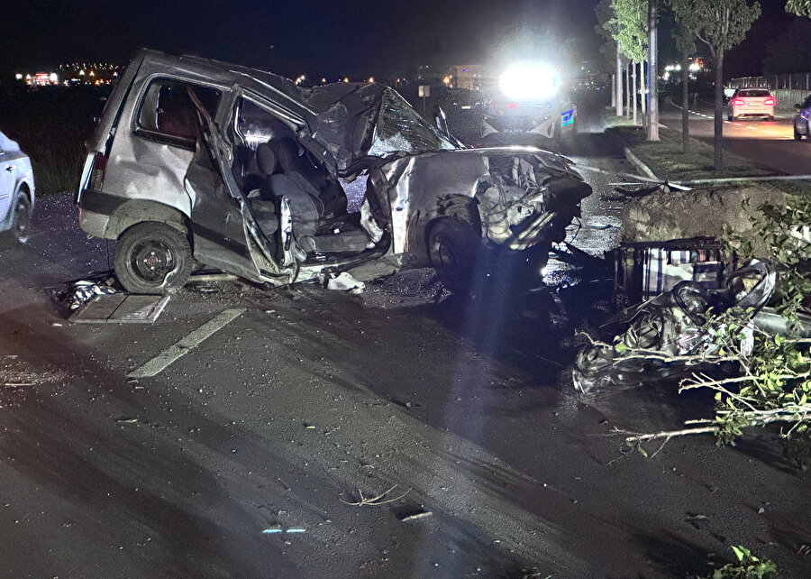 Otomobil, refüjdeki ağaç ve aydınlatma direğine çarpıp devrildi: Bir ölü, iki yaralı