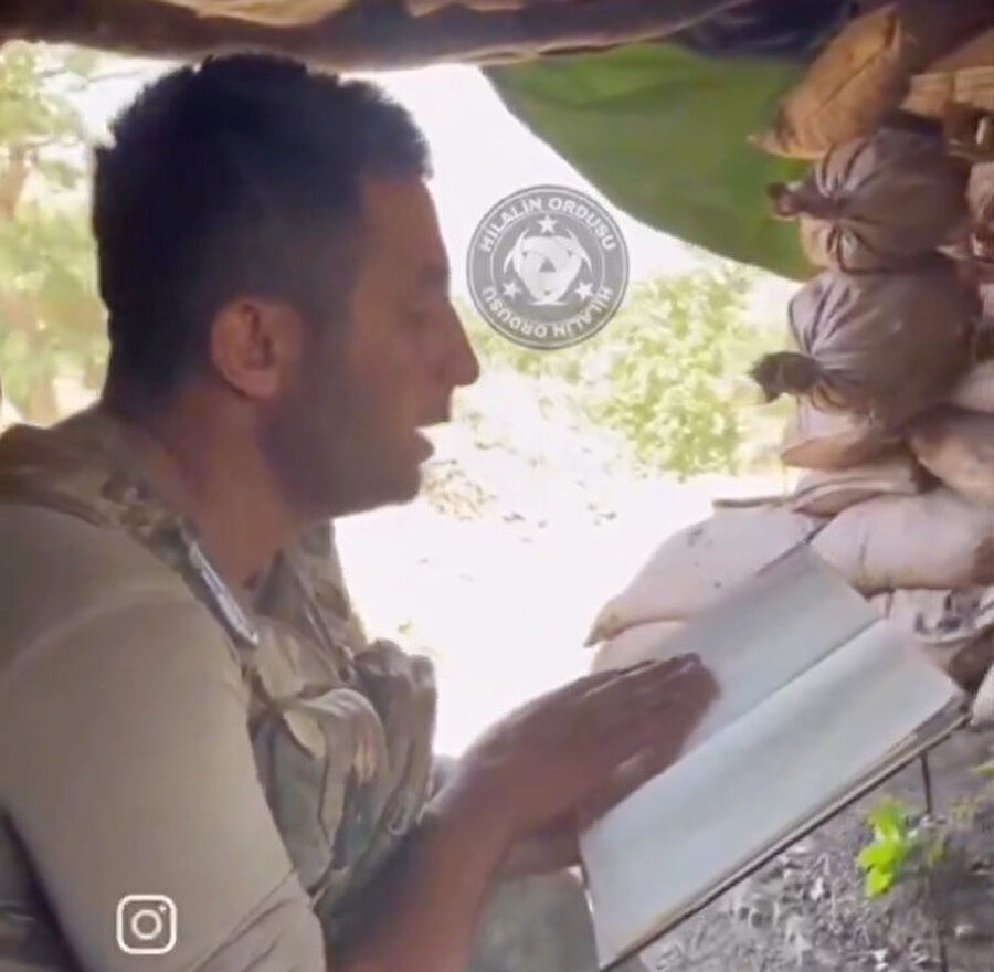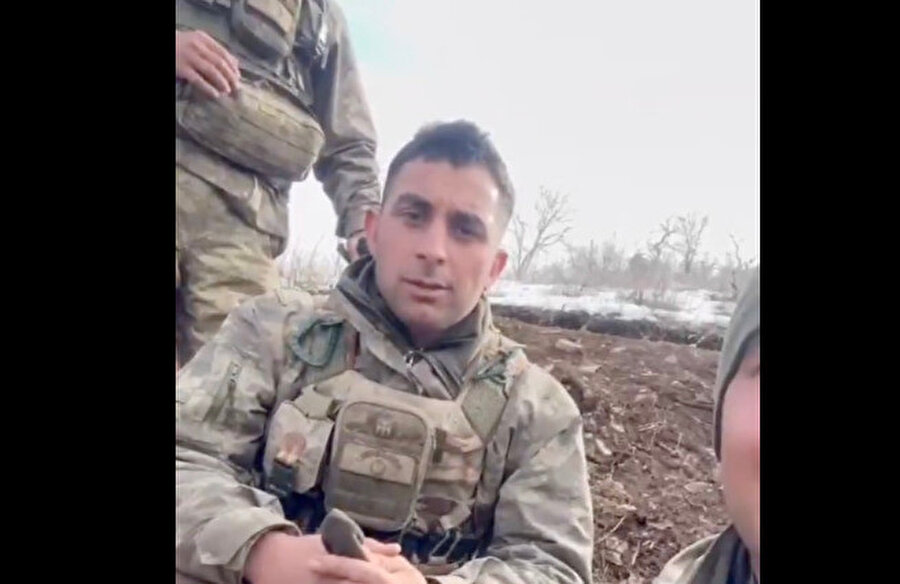 Görüntüde, "Eğer olur da bir gün şehit olursam kardeşim, paylaş bunu, tamam mı?" diyerek kendisini video kaydına aldıran Uyanık, Kur'an-ı Kerim okuyor.