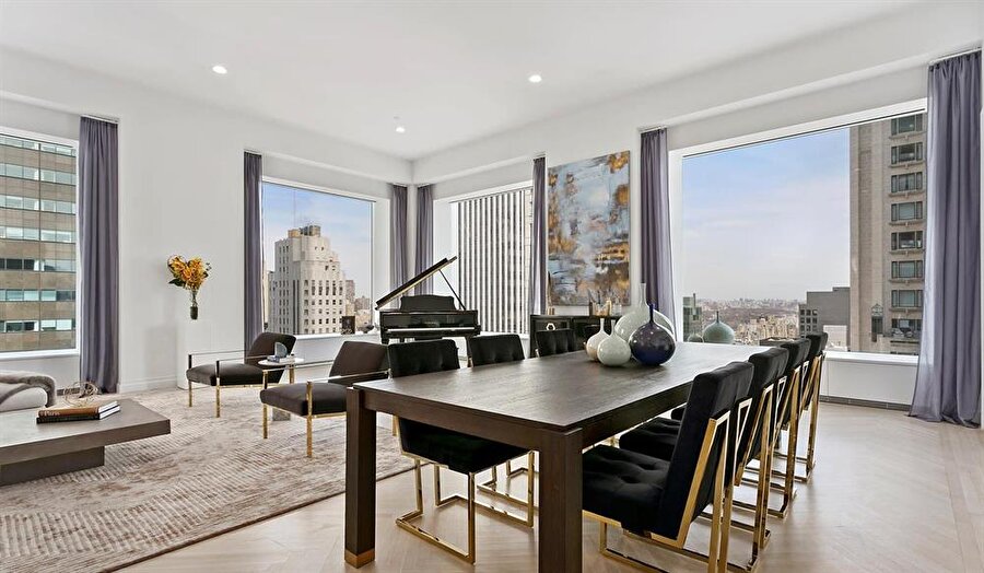 New York’un en pahalı caddesi 57’th Street üzerindeki 96 katlı residansın 35’inci katındaki dairenin satış fiyatı dudak uçuklatıyor. Rahmi Koç, üç yatak odası ve 3.5 banyosu bulunan 400 metre kare dairesi için 15.9 milyon dolar istiyor. ABD’nin ünlü emlak firmalarından Douglas Elliman şirketi tarafından satış listesine konulan dairenin aylık vergisi 7,136 dolar, aylık zorunlu apartman gideri ise 8,331 dolar.