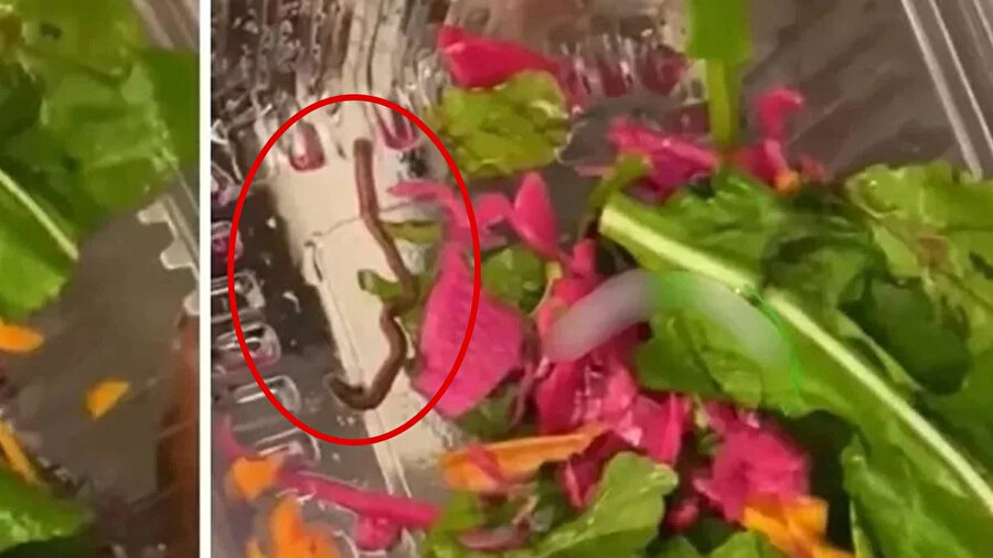 Masaya servis edilen salatayı yerken hareketlilik fark eden müşteri, daha yakından baktığında tabaktaki ürünlerin arasında bir solucan olduğunu gördü. Bunun üzerine telefonuna sarılan müşteri, görüntüleri kaydedip sosyal medya hesaplarında paylaşarak duruma tepki gösterdi. Video kısa sürede binlerce kişiye ulaştı.