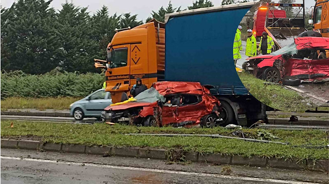 Rize’de feci kaza: Otomobil tırın dorsesine çarptı, üç kişi hayatını kaybetti