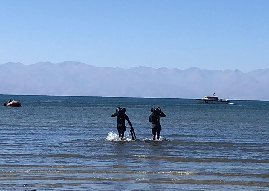 Bölgeye gelen "Kurbağa adamlar", su altı görüntüleme cihazları ve botlarla hem gölün derinliklerinde hem de kıyı bölgelerinde Kabaiş'in bulunmasına yönelik arama çalışmaları gerçekleştirdi.