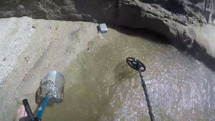 Dedektörün ötmemesine rağmen sıkıca bantlanmış paketi açmaya başlayan genç bu anları kamerasına kaybetmeyi ihmal etmedi.