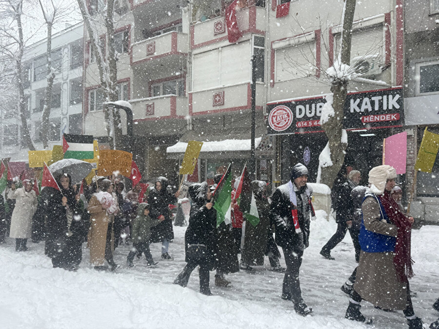 Sakarya'da kar yağışına aldırmadan Gazze mitingi gerçekleştirildi