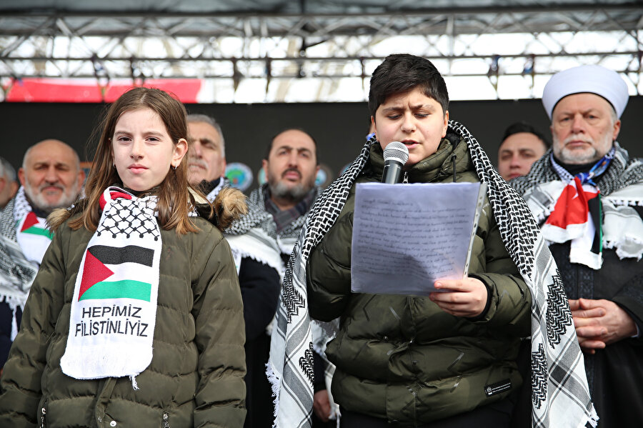 Konuşmaların ardından iki öğrenci, Gazze'deki akranları için yazdıkları mektubu ve şiiri okudu.