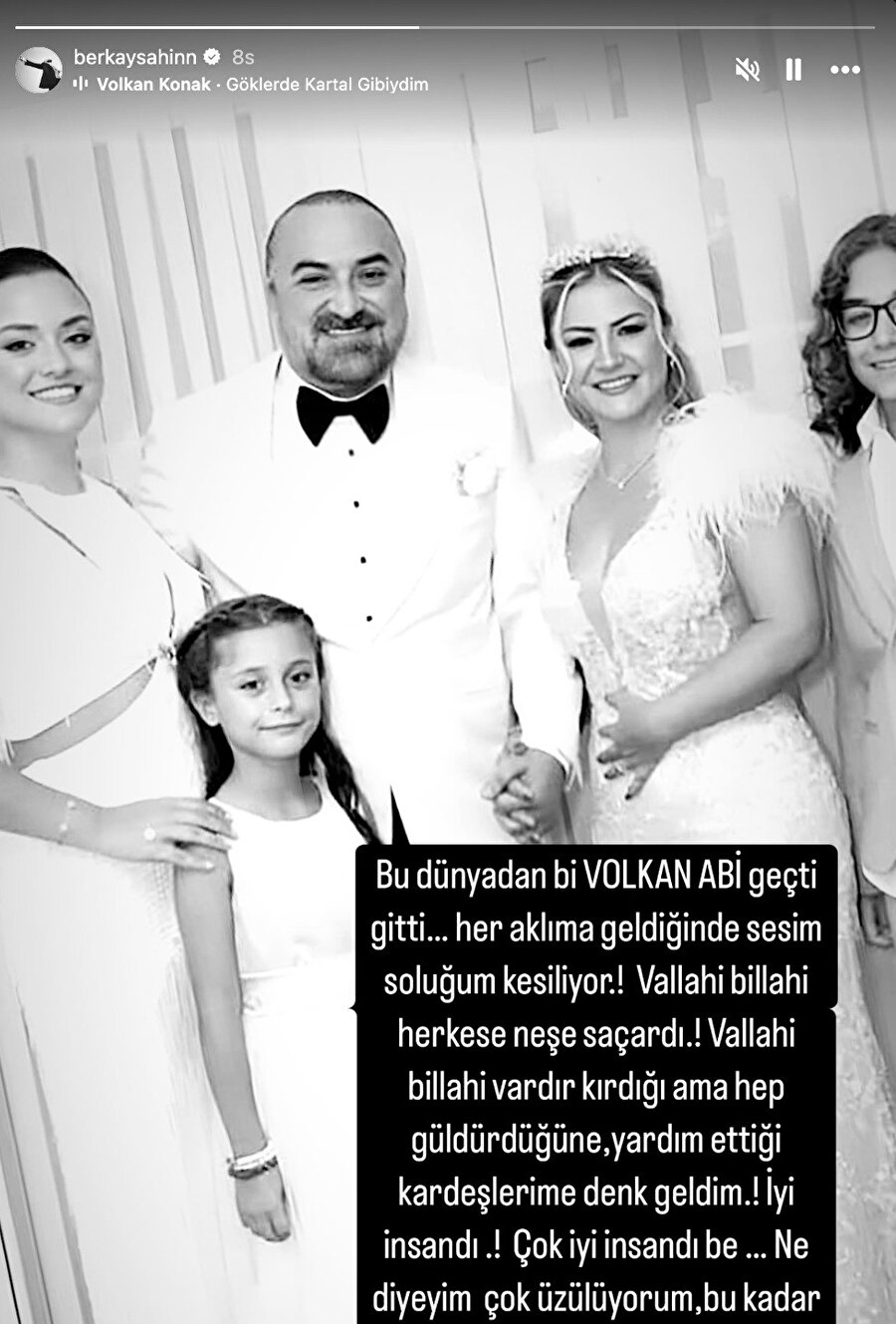 Volkan Konak'ın vefat haberinin ardından, birlikte sahne aldıkları bir anı da paylaşan Berkay, "Hayatımda - ailem dahil - kaybettiklerimi sosyal medyaya koymam ama bu sefer içim dayanmadı. Aslan ağabeyim, canım Volkan ağabeyim göçüp gitti…" sözleriyle duygularını dile getirdi.