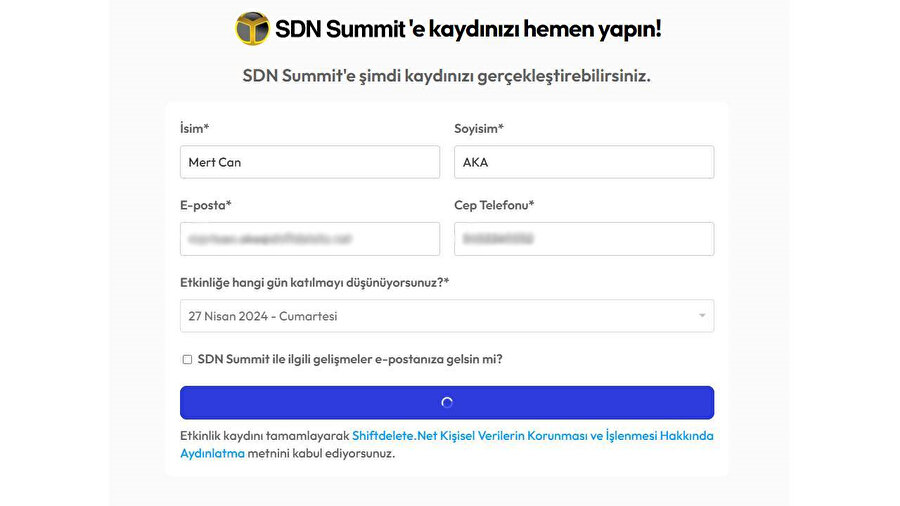 - İsim, Soyisim, E-posta ve Cep Telefonu bilgilerimizi giriyoruz.