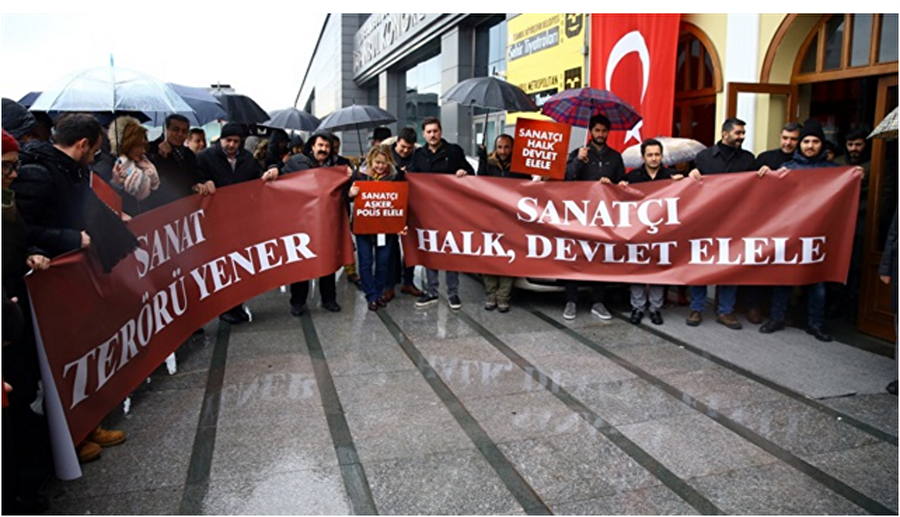 Şehir Tiyatroları genel sanat yönetmeni Süha Uygur, Şehir Tiyatroları Müdürü Salih Efiloğlu ve kurumun sanatçılarından Zihni Göktay ile Kenan İmirzalioğlu gibi isimlerin yer aldığı sanatçılar; Harbiye Muhsin Ertuğrul Sahnesinden, Beşiktaş da bulunan Şehitler Tepesine doğru yürüyüşe çıkmak istedi fakat yağmurlu havanın olumsuz etkisine takıldılar.