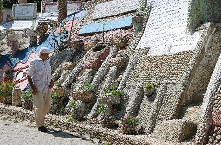 Yaptığı eserlerde toplam 550 bine yakın taş olduğunu söyleyen İlhan, “Bir senemi aldı burayı tamamlamak, arada sırada bıraktım. Taş buldukça yaptım buraları taş olsaydı daha da çabuk biterdi, 6 ayda biterdi belki de. Ben yarıya kadar saydım 550 bine yakın taş var. Ziyaret edenler illa oluyor. Eski valimiz, emniyet müdürümüz buradan geçerken durup ziyaret etti ve bana teşekkür etti. İlimden, bilimden anlayan insanlar geçerken teşekkür ediyorlar, ama ilimden bilimden anlamayan insan burada bulunan yazıları okumadan hiç bakmadan geçip gidiyor” şeklinde konuştu.