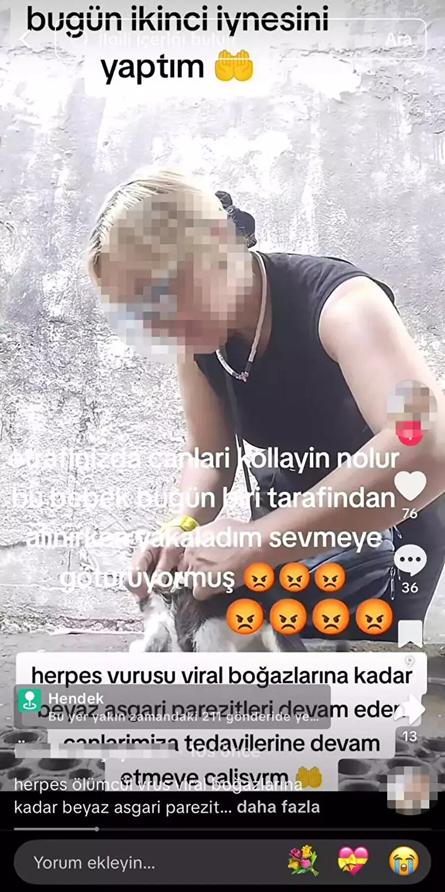 Hendek ilçesinde bir kadının sosyal medya paylaşımlarında sokak kedilerine, herpes virüsü için iğne yaptığı, tedavi etmeye çalıştığını belirttiği görüntüler yer aldı. Görüntüler, çok sayıda hayvanseverin tepkisine yol açtı.