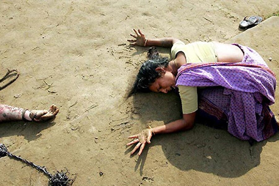 Hintli bir kadın, 26 Aralık 2004 günü meydana gelen Hint Okyanusu depremi ve tsunamisin de ölen yakını için ağlıyor.
