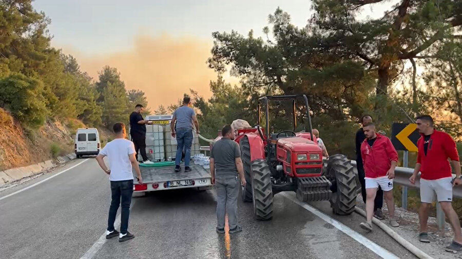Rüzgarın etkisiyle hızla büyüyen alevlere müdahale çalışmalarına vatandaşlar da destek veriyor.