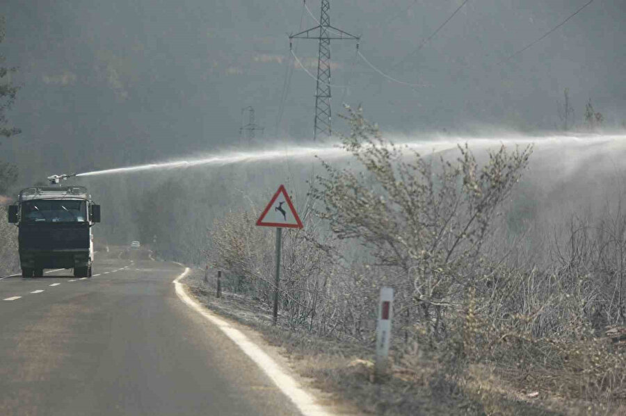 Orman Bölge Müdürlüğü ve itfaiye ekiplerinin havadan yangın söndürme uçaklarıyla ve helikopterleriyle, karadan arazöz ve tankerlerle müdahale ettiği yangını, tamamen söndürme ve soğutma çalışmaları devam ediyor.