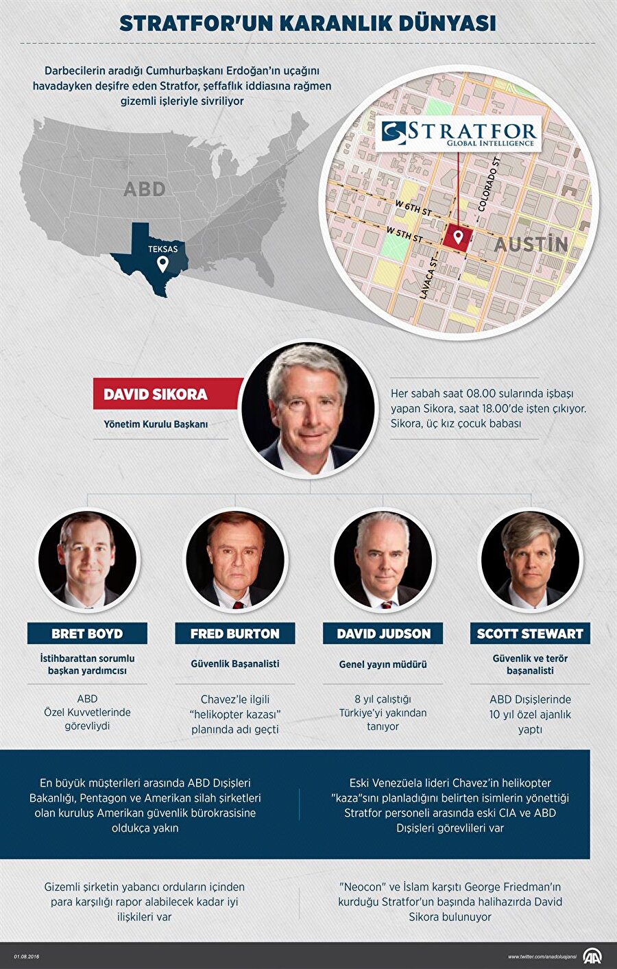 FETÖ'nün 15 Temmuz'daki darbe girişiminin kritik dakikalarında Cumhurbaşkanı Recep Tayyip Erdoğan'ın uçağının konumuyla ilgili paylaşımlarda bulunarak dikkatleri üzerine çeken ABD'nin özel istihbarat örgütü Straftfor hakkında dikkat çekici bilgiler